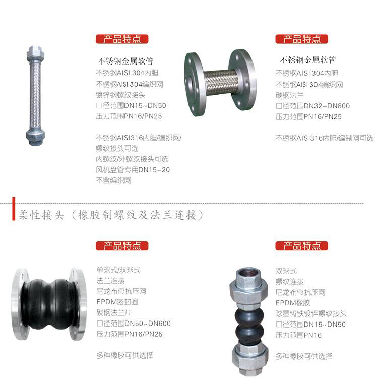 柔性接頭(不鏽(xiù)鋼制螺紋及法(fa)蘭連接)